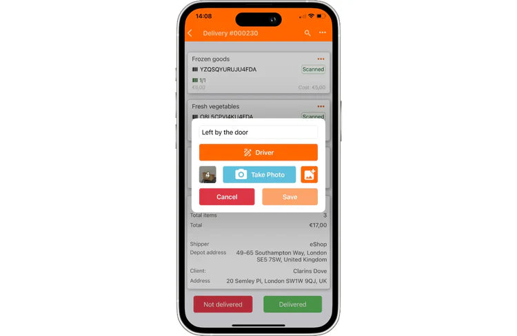 Location and time data for complete delivery transparency.